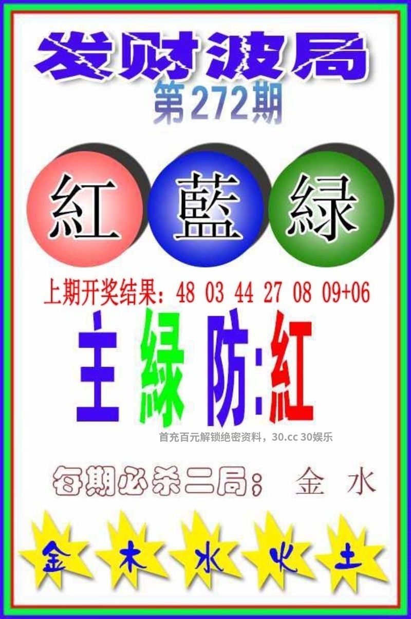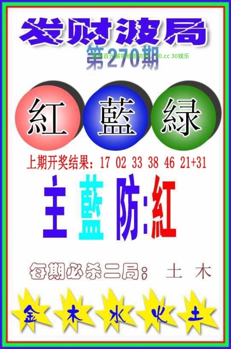 273期『发财波局』开虎04 精解特肖:虎兔龙牛马狗 必中二波:主蓝防红 绝杀二局:火木 |